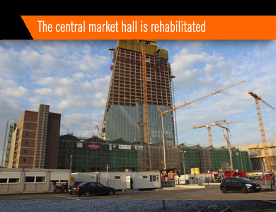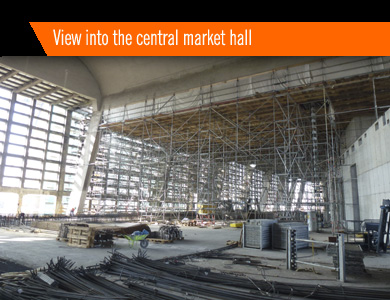 central market hall with new internal structures, a high-rise building
