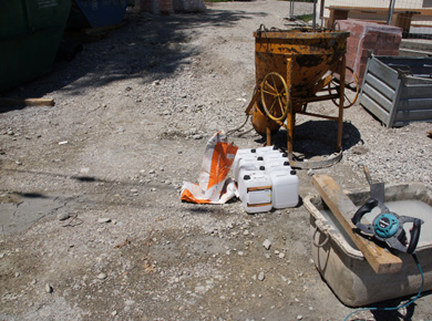 Due to the tricky substrate, the spray plaster is mixed using epasit primer emulsion and water |