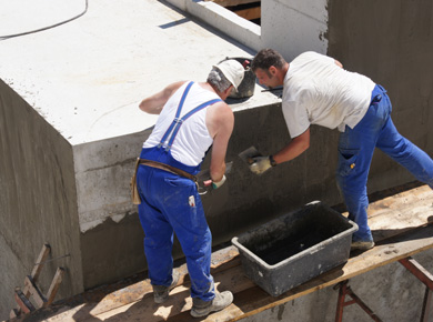 Using trowels, the waterproof plaster is applied to the outside
