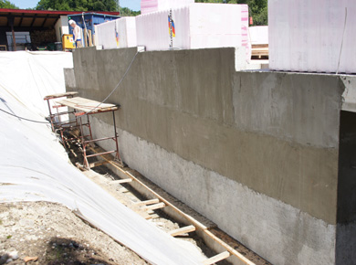 In 2013, the Peter Maffay Foundation constructed a second building, a meeting centre, in the Bavarian town of Jägersbrunn. During the construction phase, the builders coated the outside walls of the prefabricated concrete basement with sealant. Because of the high groundwater level and extreme pressure due to the surrounding lakes, the epasit MineralDicht sperr waterproof plaster was used instead of standard slurry seals.